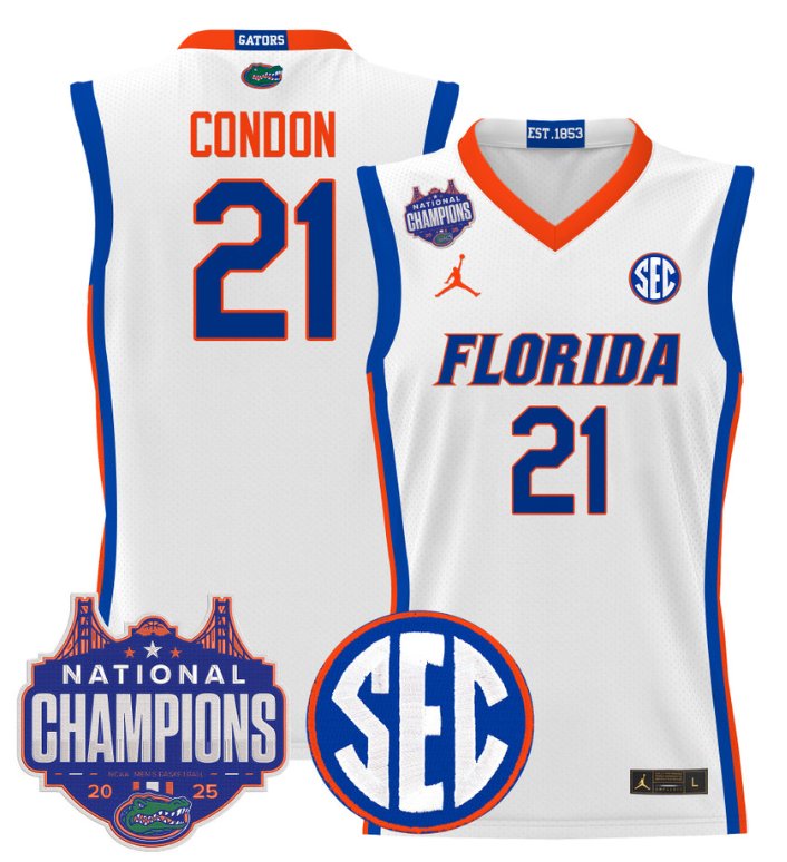 Alex Condon Jersey #21 Florida Gators 2025 National Champions Patch White