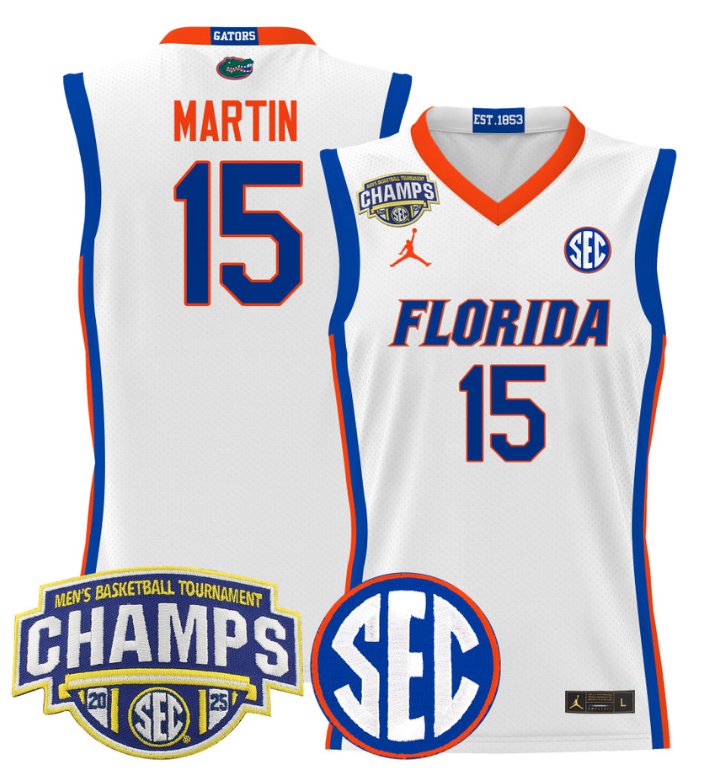 Alijah Martin Jersey #15 Florida Gators 2025 Tournament Champions Patch White