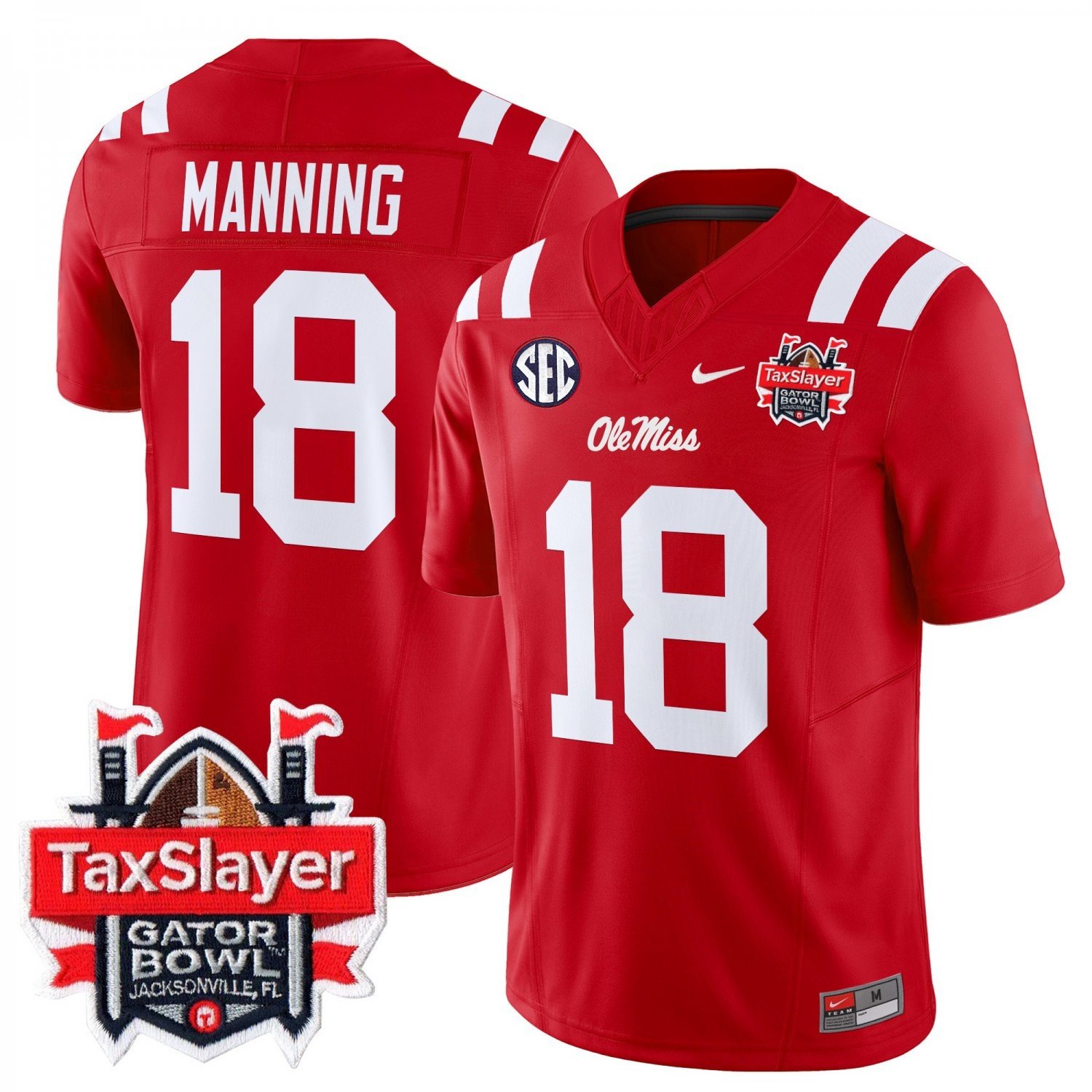 Archie Manning #18 Ole Miss Rebels Gator Bowl Patch Vapor Red