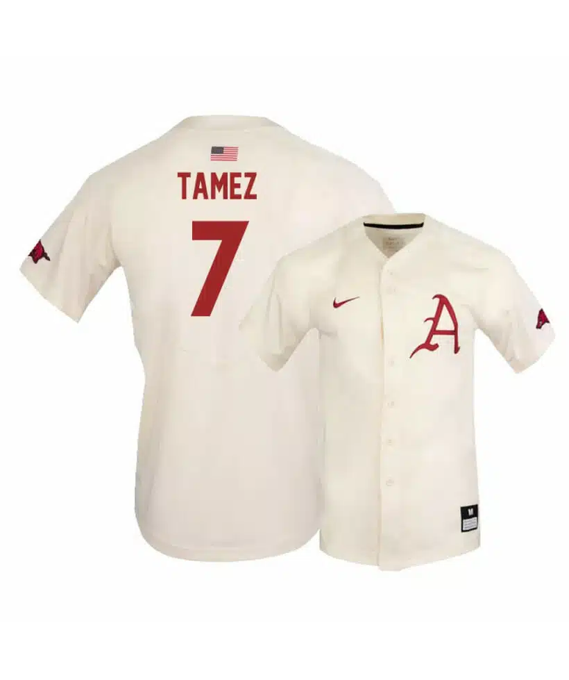 Arkansas Razorbacks 7 Dominic Tamez White Elite Baseball Jersey