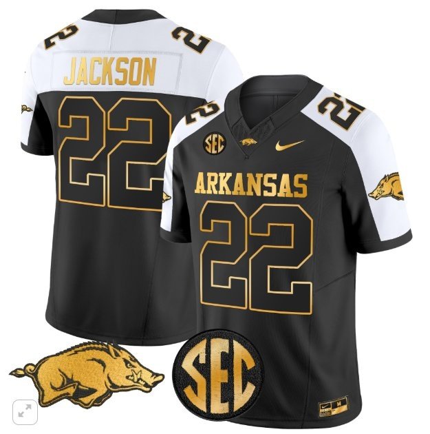 Arkansas Razorbacks Ja’Quinden Jackson #22 Home Vapor Patch Black Alternate