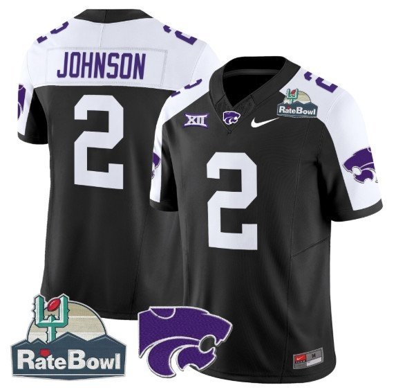 Avery Johnson #2 Kansas State Wildcats 2025 Rate Bowl Patch Black Alternate