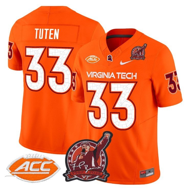 Bhayshul Tuten #33 Virginia Tech Hokies Coach Frank Beamer Patch Orange