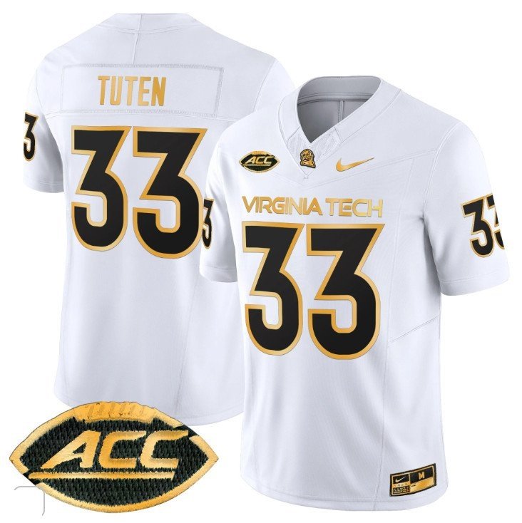 Bhayshul Tuten #33 Virginia Tech Hokies Coach Frank Beamer White Gold
