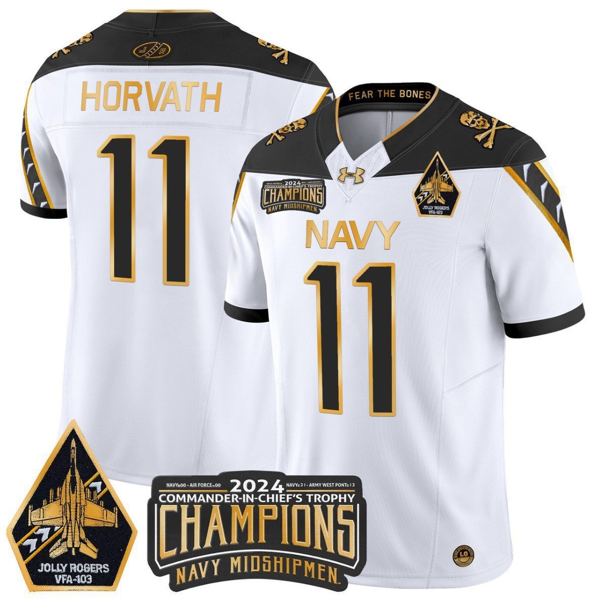 Blake Horvath #11 Navy Midshipmen Jolly Rogers Champions Patch White Gold