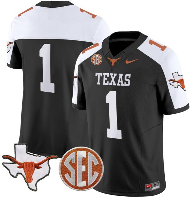 Blank Name #1 Texas Longhorns State Map SEC Patch Vapor Black Alter