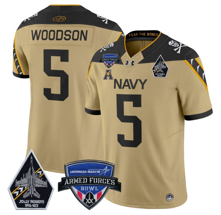 Braxton Woodson #5 Navy Midshipmen 2025 Armed Forces Bowl Gold