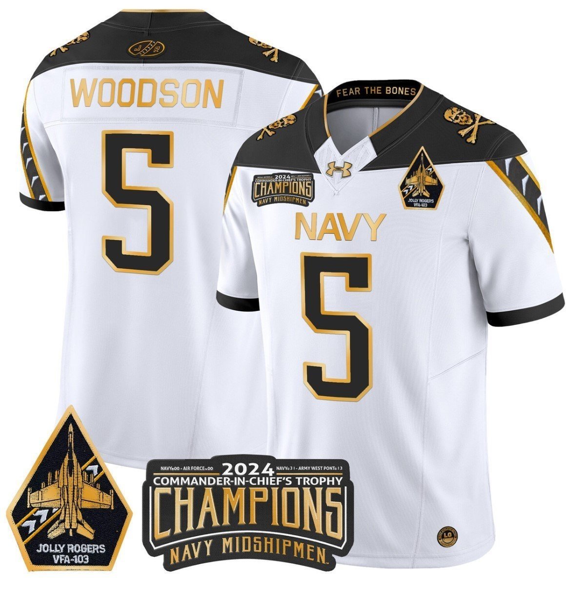 Braxton Woodson #5 Navy Midshipmen Jolly Rogers Champions Patch White Gold