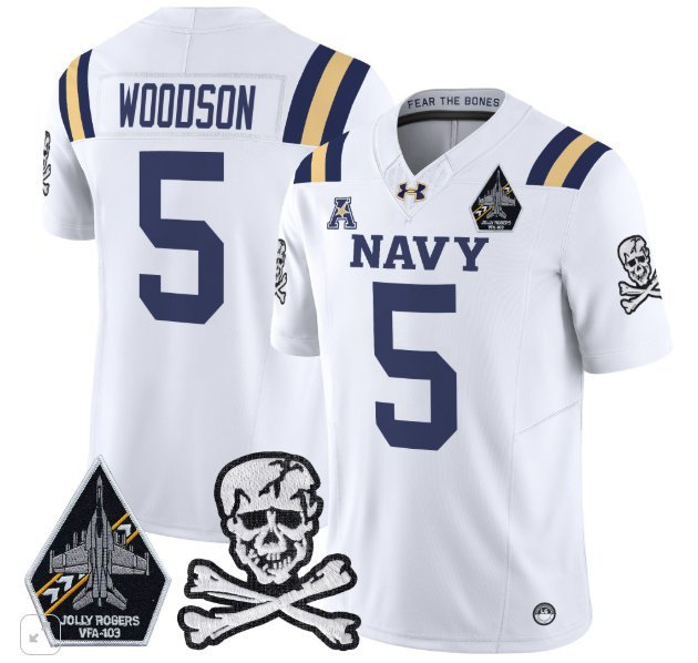 Braxton Woodson #5 Navy Midshipmen Vapor Patch College White