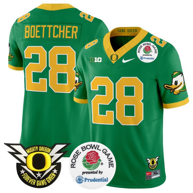 Bryce Boettcher #28 Oregon Ducks 2024 Rose Bowl Stitched Green