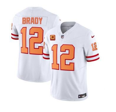 Buccaneers #12 Tom Brady 2023 F.U.S.E. White With 4-Star C Patch Throwback