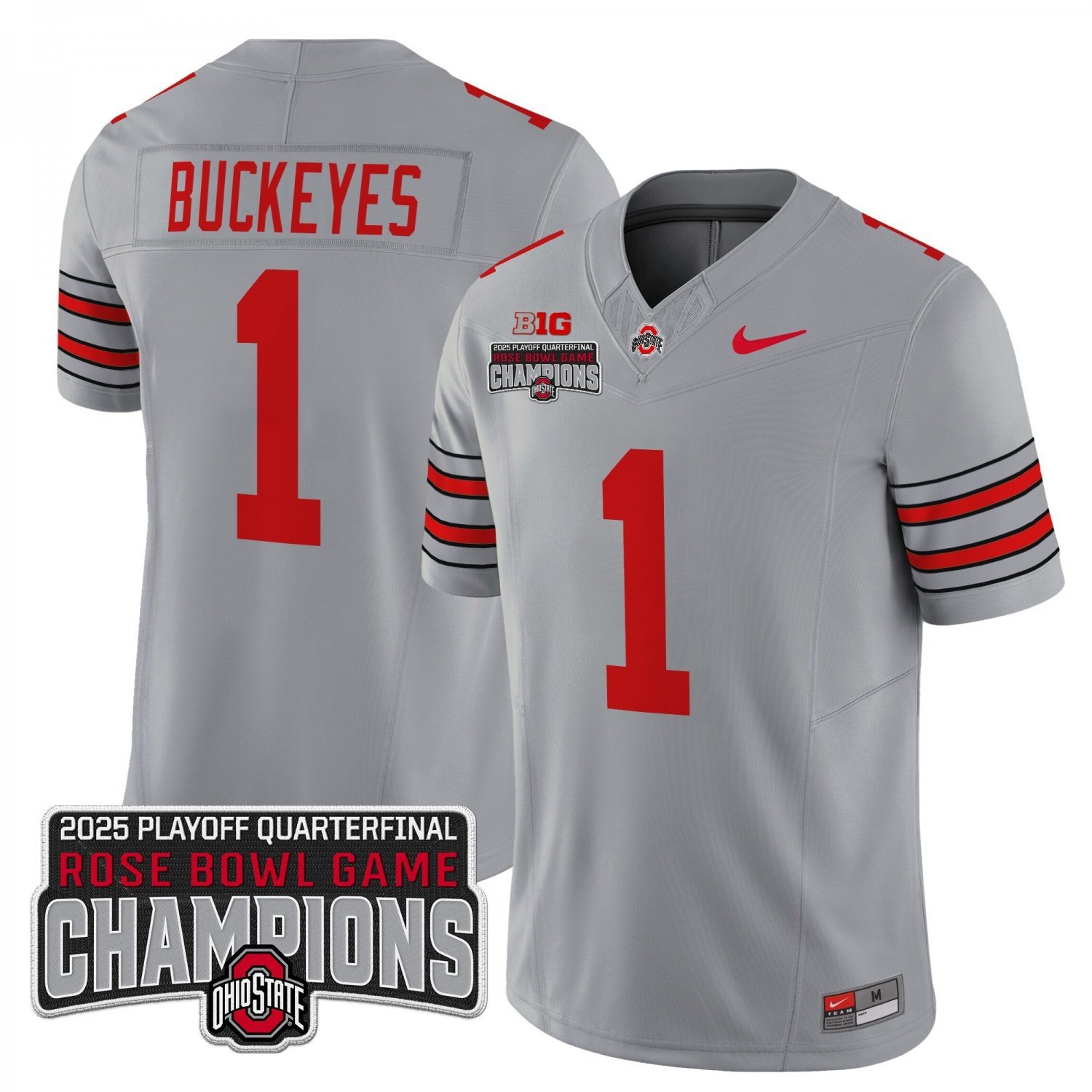 Buckeyes #1 Ohio State Buckeyes 2025 Rose Bowl Champions Patch Gray