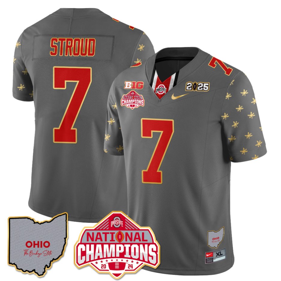 C J Stroud Jersey #7 Ohio State National Champions 2025 Patch Gray