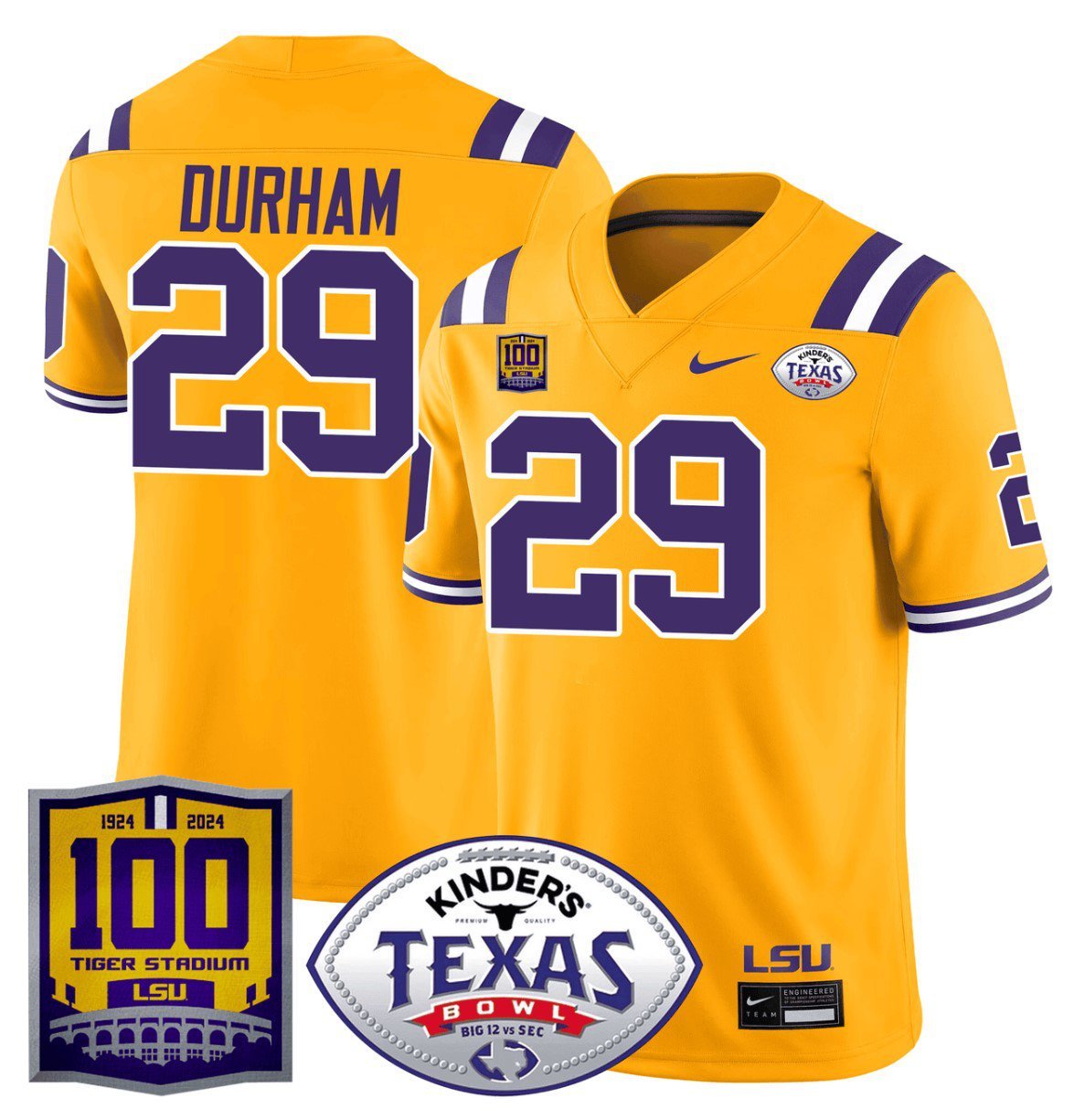Caden Durham #29 LSU Tigers Texas Bowl Patch Gold