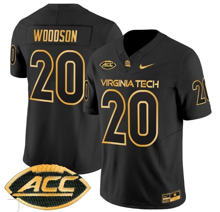 Caleb Woodson #20 Virginia Tech Hokies Coach Frank Beamer Black Gold