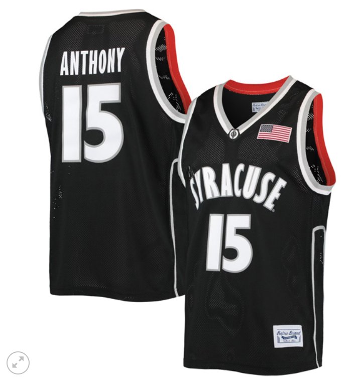 Carmelo Anthony Jersey #15 Syracuse Orange College Basketball Stiched Alumni Black