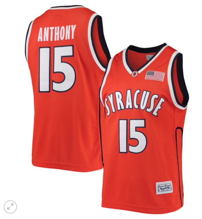 Carmelo Anthony Jersey #15 Syracuse Orange College Basketball Stiched Alumni Orange