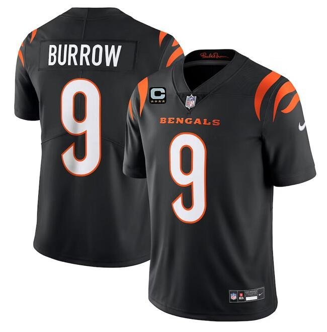 Cincinnati Bengals #9 Joe Burrow Black With 4-Star C Patch Vapor Untouchable