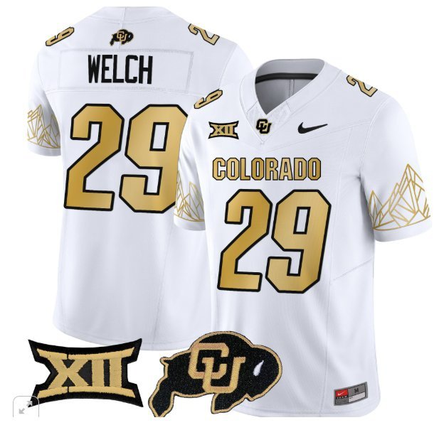Colorado Buffaloes Micah Welch #29 Vapor Big 12 Patch White Gold