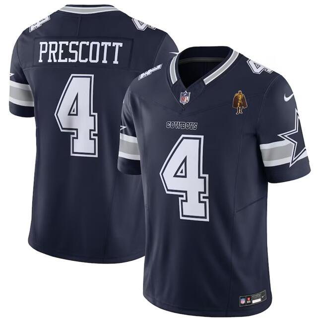 Cowboys #4 Dak Prescott Navy 2023 F.U.S.E. With Walter Payton Patch