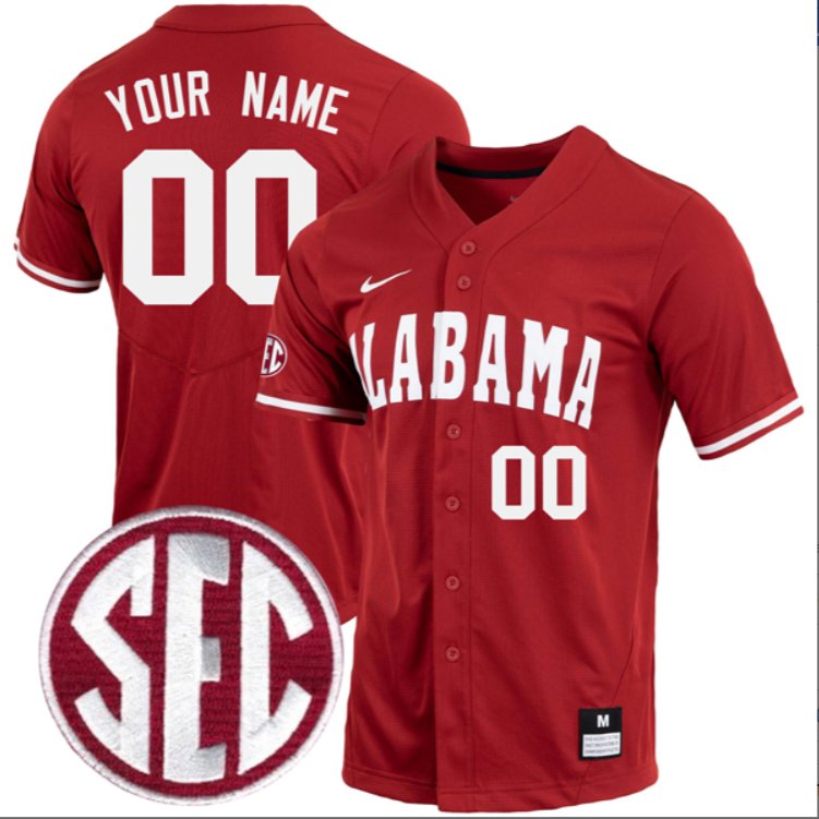 Custom Alabama Crimson Tide Baseball Crimson Full Button Jersey Stitched SEC Patch