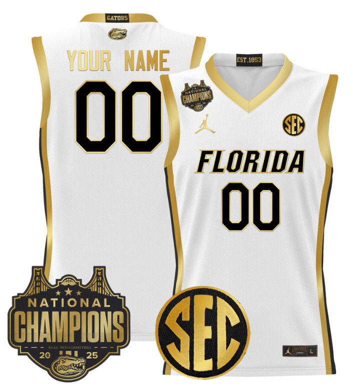 Custom Florida Gators Jersey 2025 National Champions Patch Stitched White Gold