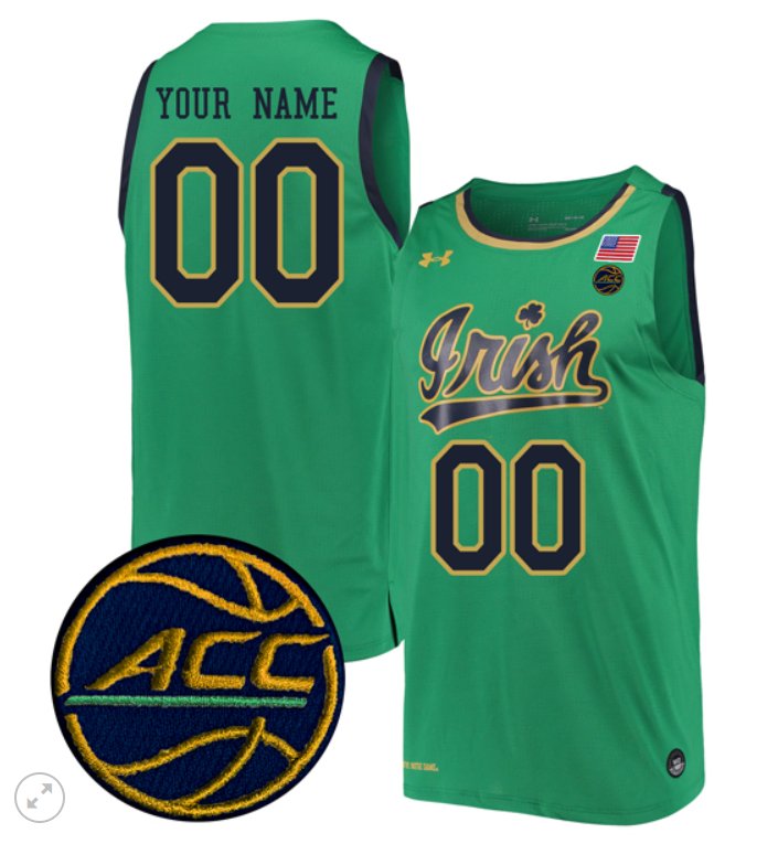 Custom Notre Dame Fighting Irish Jersey Basketball Stiched Green