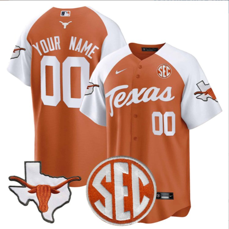 Custom Texas Longhorns Baseball Orange Inverted Jersey Stitched SEC Patch