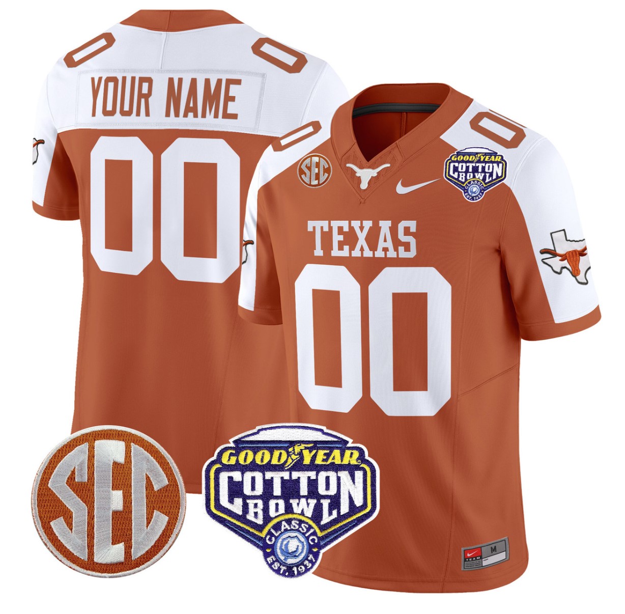 Custom Texas Longhorns Jersey Name, Number Cotton Bowl Patch Football All Stitched