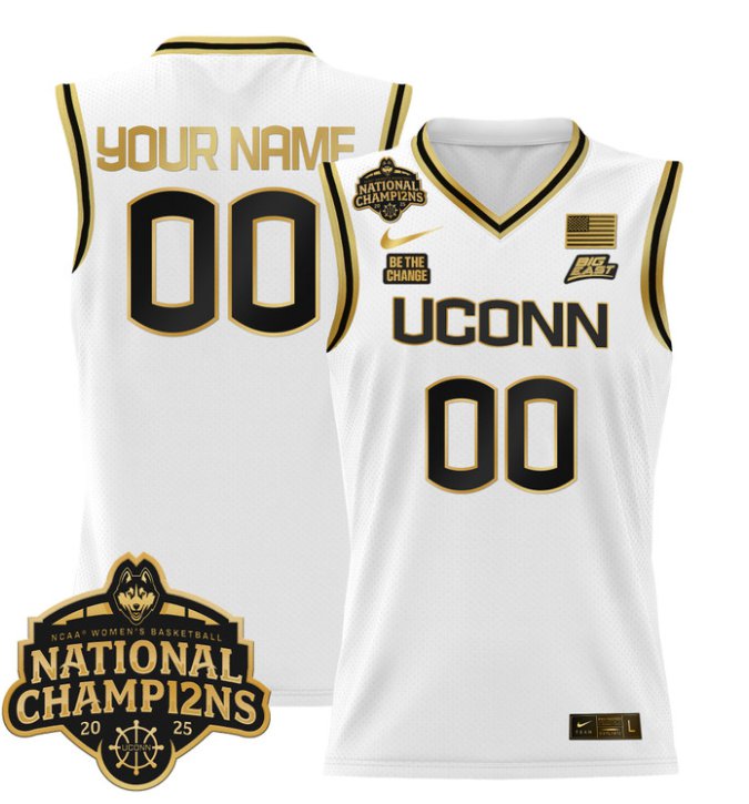 Custom UConn Huskies Jersey 2025 National Champions Patch Stitched White Gold