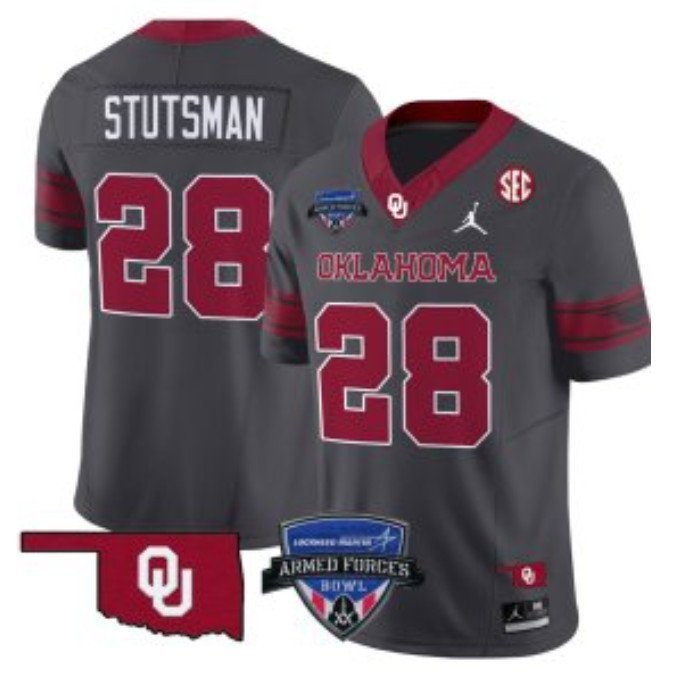 Danny Stutsman #28 Oklahoma Sooners 2025 Armed Forces Bowl Patch Anthracite