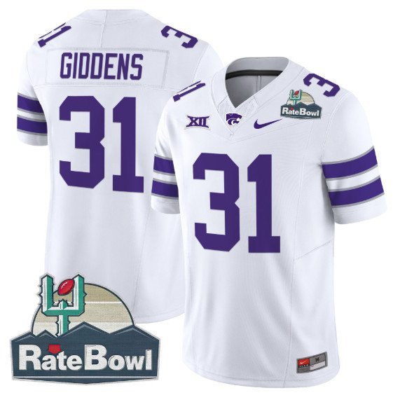 DJ Giddens #31 Kansas State Wildcats 2025 Rate Bowl Patch White