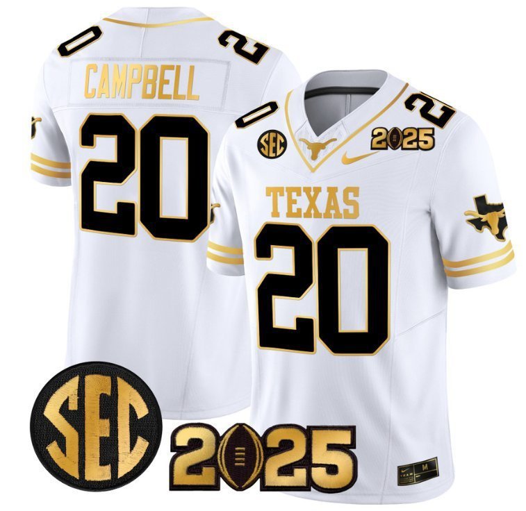 Earl Campbell #20 Texas Longhorns 2025 CFP Final Patch White Gold