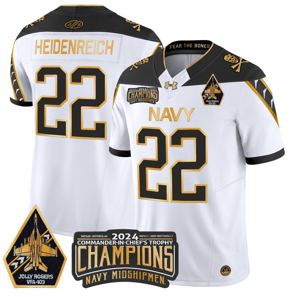 Eli Heidenreich #22 Navy Midshipmen Jolly Rogers Champions Patch White Gold