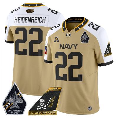Eli Heidenreich Jersey #22 Navy Midshipmen Jolly Rogers Patch Gold Alternate