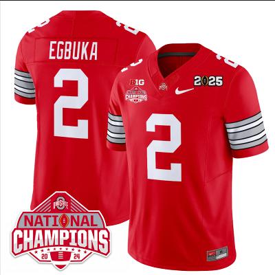 Emeka Egbuka Jersey #2 Ohio State 2025 CFP Patch National Champions Red