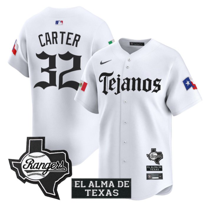 Evan Carter Jersey #32 Texas Rangers Mexico Tejano Barrio Style Vapor Limited Stitched White