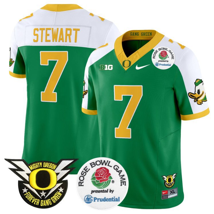 Evan Stewart #7 Oregon Ducks 2024 Rose Bowl Green Alternate