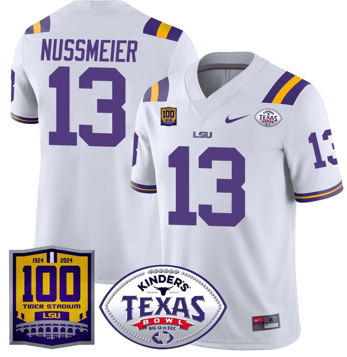 Garrett Nussmeier #13 LSU Tigers Texas Bowl Patch White