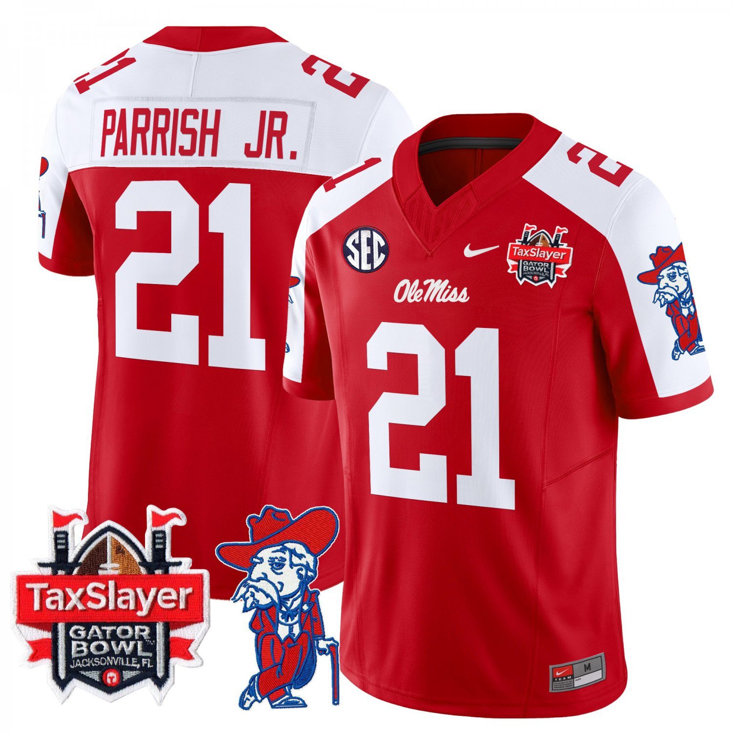 Henry Parrish Jr. #21 Ole Miss Rebels Gator Bowl Patch Vapor Red Alternate