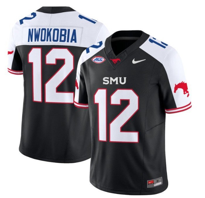 Isaiah Nwokobia #12 SMU Mustangs Icy Whites Vapor Black Alternate