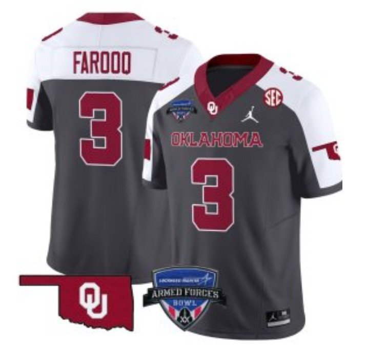 J. Farooq #3 Oklahoma Sooners 2025 Armed Forces Bowl Patch Anthracite Alt