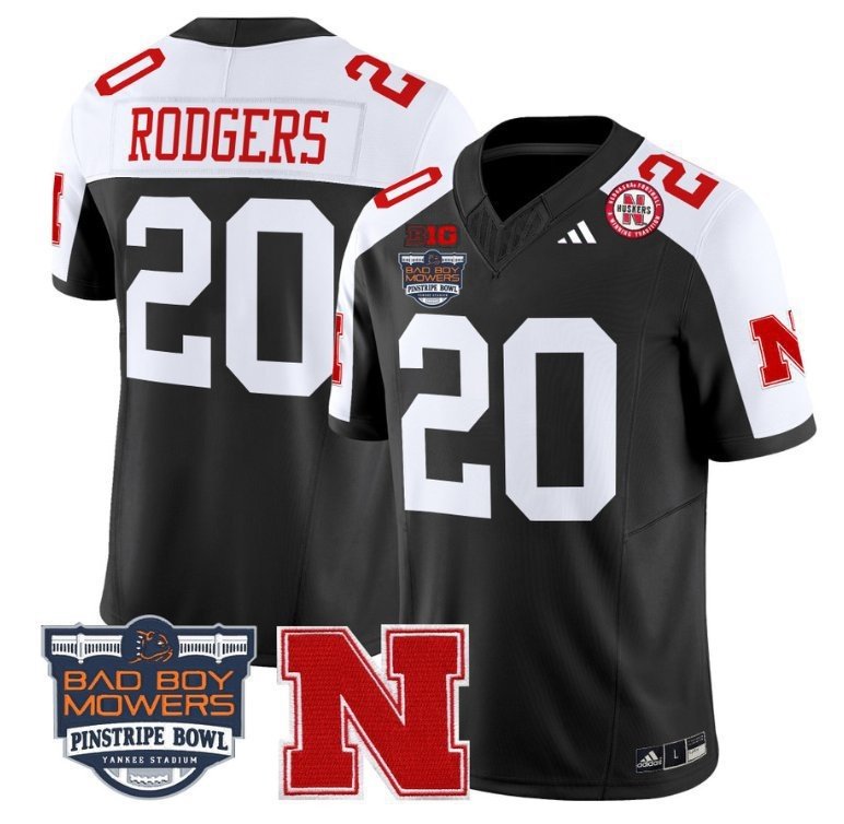J. Rodgers #20 Nebraska Cornhuskers 2025 Pinstripe Bowl Black Alternate