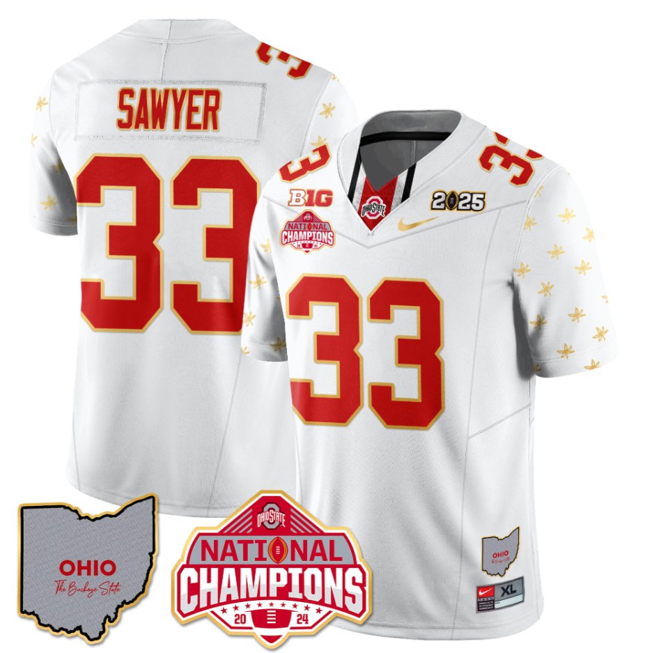 Jack Sawyer Jersey #33 Ohio State National Champions 2025 Patch White Limited