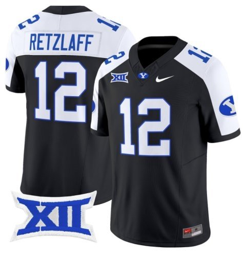 Jake Retzlaff #12 BYU Cougars Vapor 12 Patch College Black Alternate