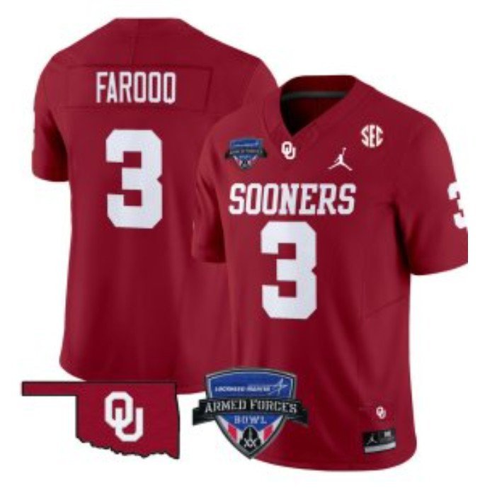 Jalil Farooq #3 Oklahoma Sooners 2025 Armed Forces Bowl Patch Crimson