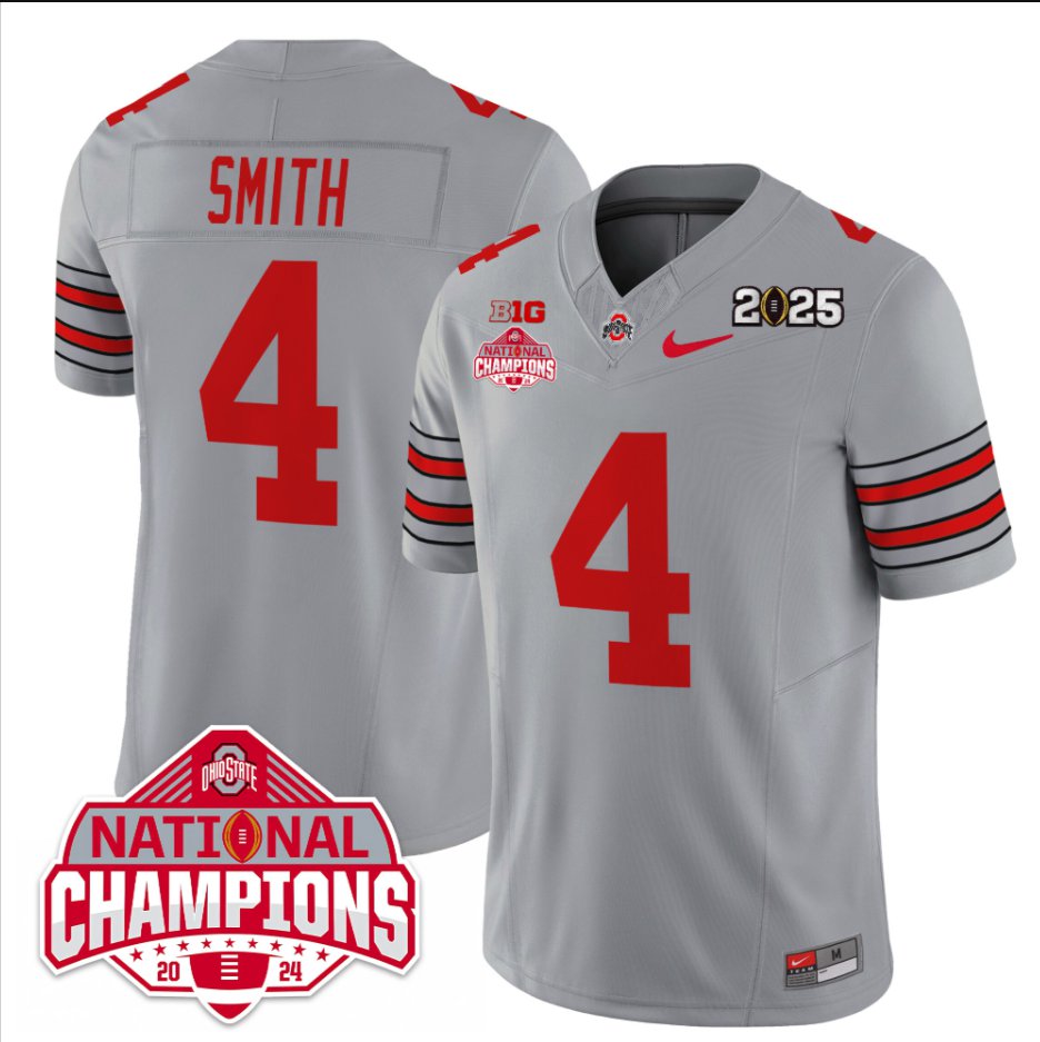 Jeremiah Smith Jersey #4 Ohio State 2025 CFP Patch National Champions Gray