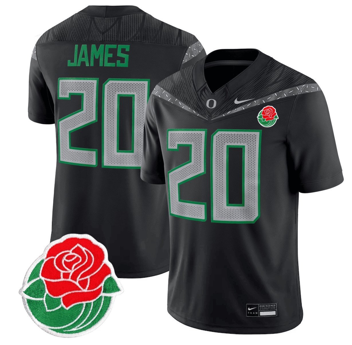 Jordan James #20 Oregon Ducks Rose Bowl Patch Vapor Black