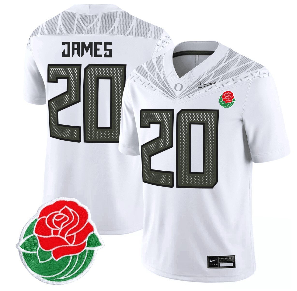 Jordan James #20 Oregon Ducks Rose Bowl Patch Vapor White