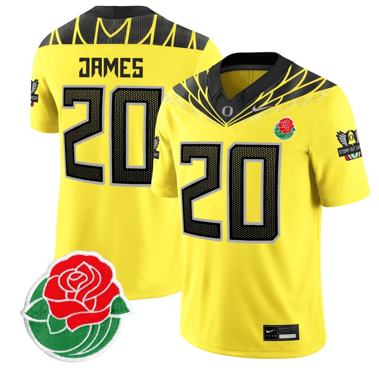Jordan James #20 Oregon Ducks Rose Bowl Patch Vapor Yellow